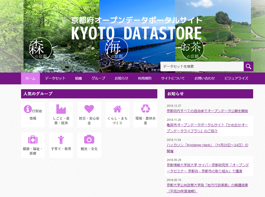 | 出典: http://odcs.bodik.jp/fukuoka-toshiken/ | 出典: https://www.datastore.pref.kyoto.lg.jp/ | 出典: http://ouropendata.jp/dataset/ |