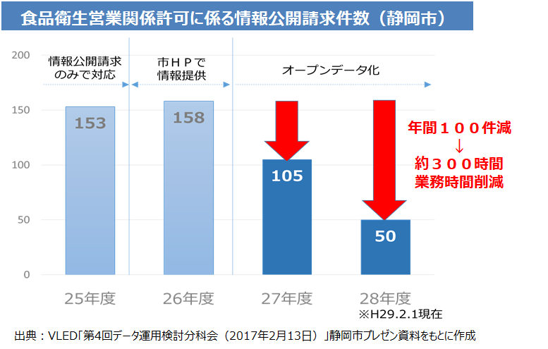 また、静岡市では、食品衛生関係許可に関する情報をオープンデータとして公開することにより、業務負担を年間300時間軽減することに成功しました。